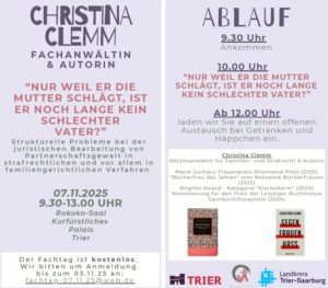 Am 07.11.25 kommt die Fachanwältin und Autorin Christina Clemm für einen Fachvortrag nach Trier.
